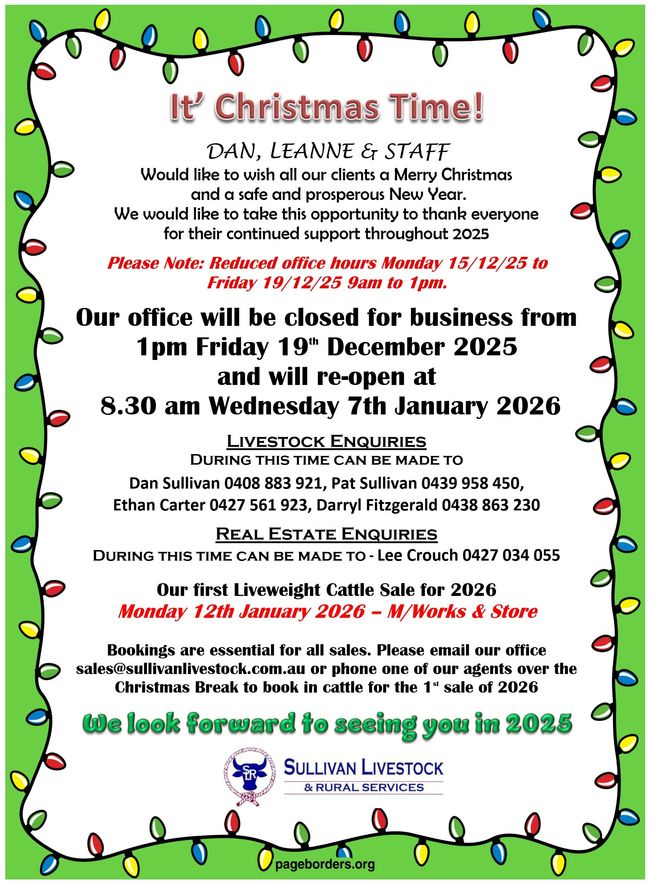 Mon 12th JAN Gympie Meatworks 8am & L/weight Store Sale 10am